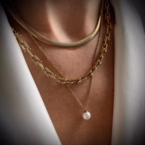 Cabo halsband i guld, en platt kedja som är lika snygg att bära ensam som att bygga lager med.