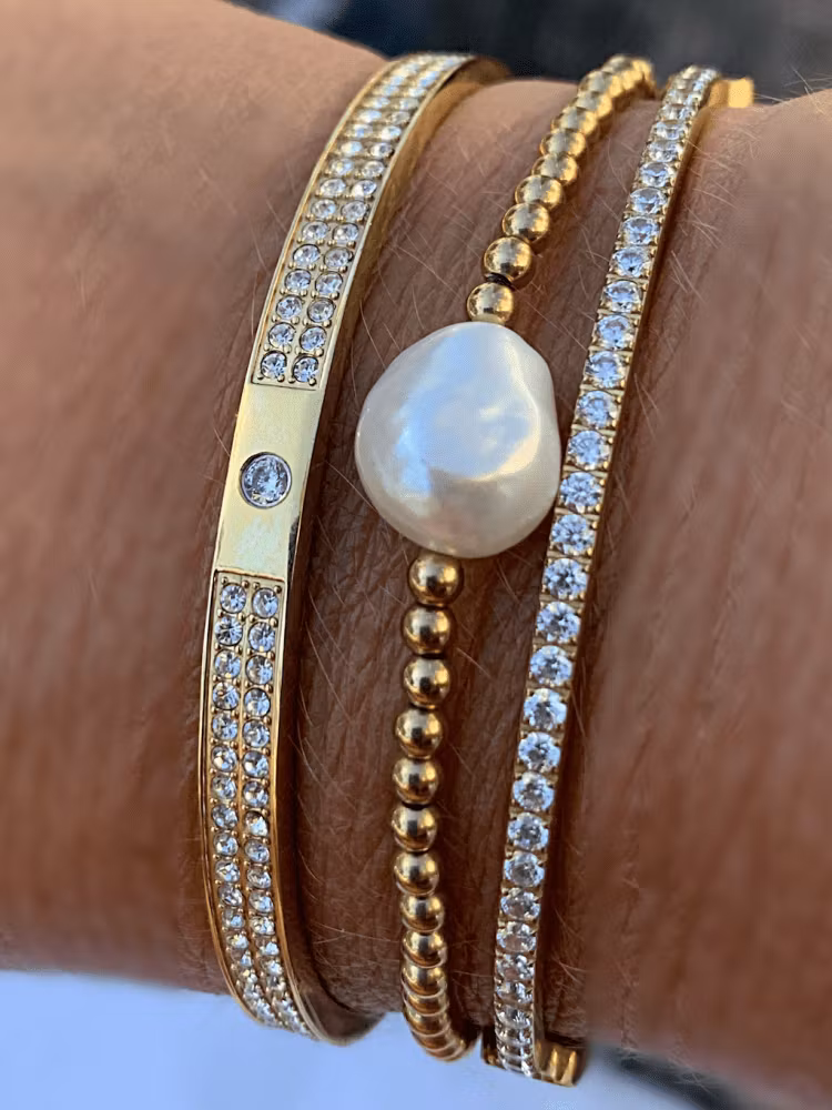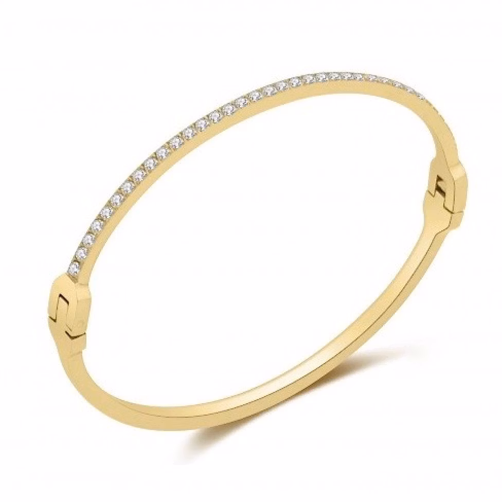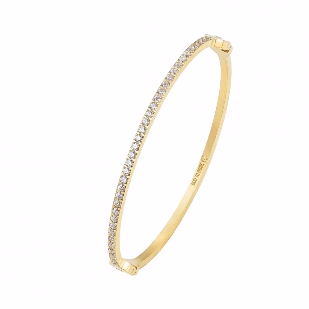 Crown Bracelet in GoldDiameter: 60mmWidth: 2,5mmMaterial: Stainless Steel with 14K Gold and Cubic ZirconiaMärke: Bud to rose