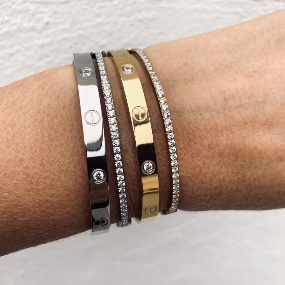 Material: Stainless Steel with 14K Gold and Cubic Zirconia