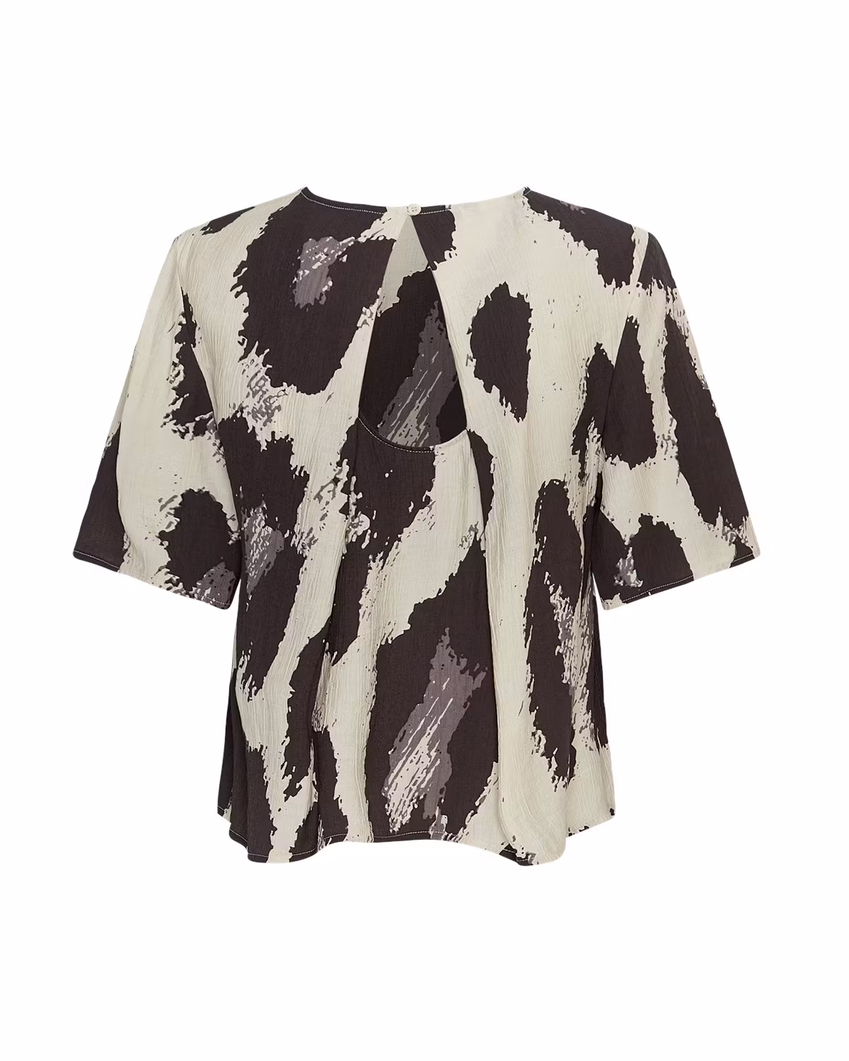 Kortärmad topp med lite längre ärm med vid och rund hals. Fin i ryggen med en cut out som ger en fin detalj, fint att bära håret uppsatt så ryggen syns.