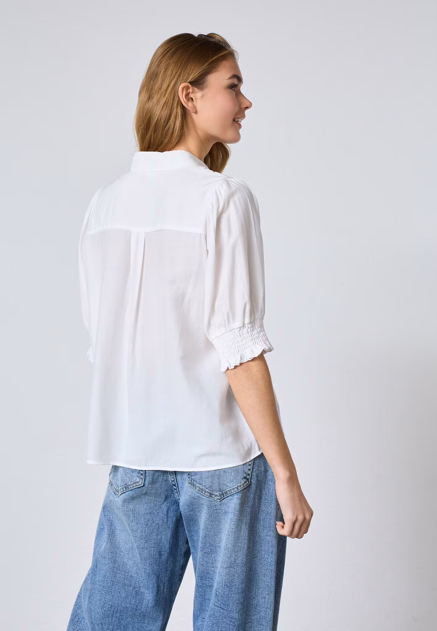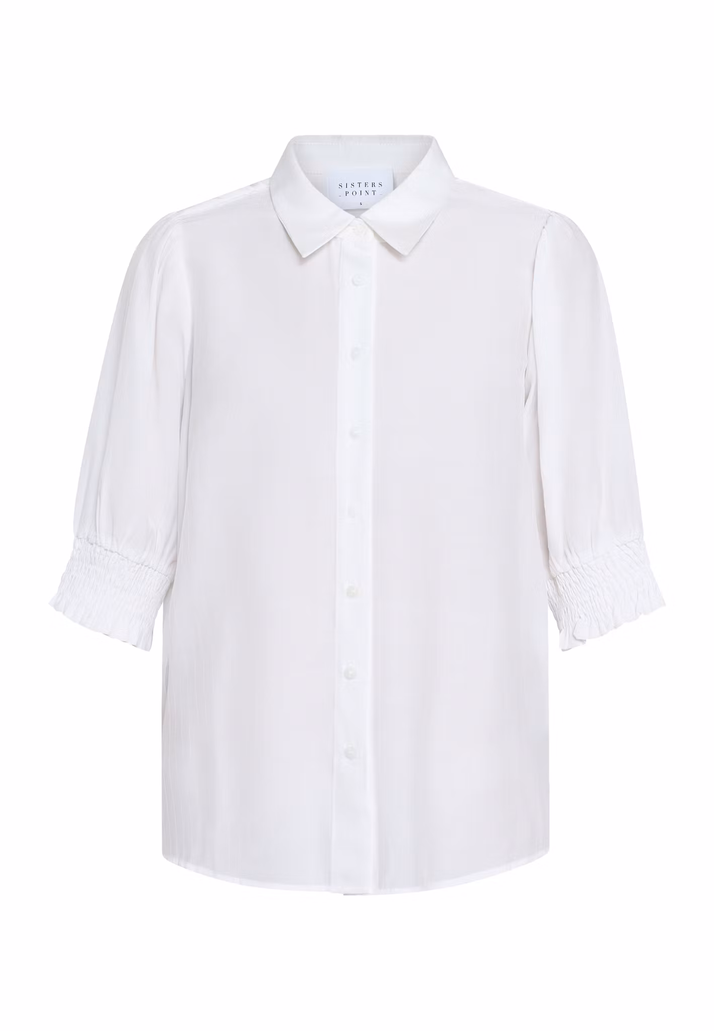 Kortärmad blus med smock i ärmslutet, knappar framtill och krage. Perfekt vardags blus med också lätt att klä upp med roliga accessoarer.