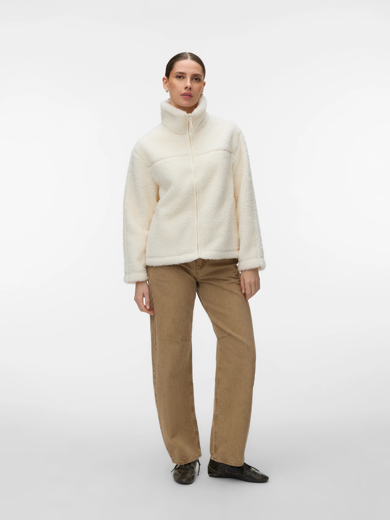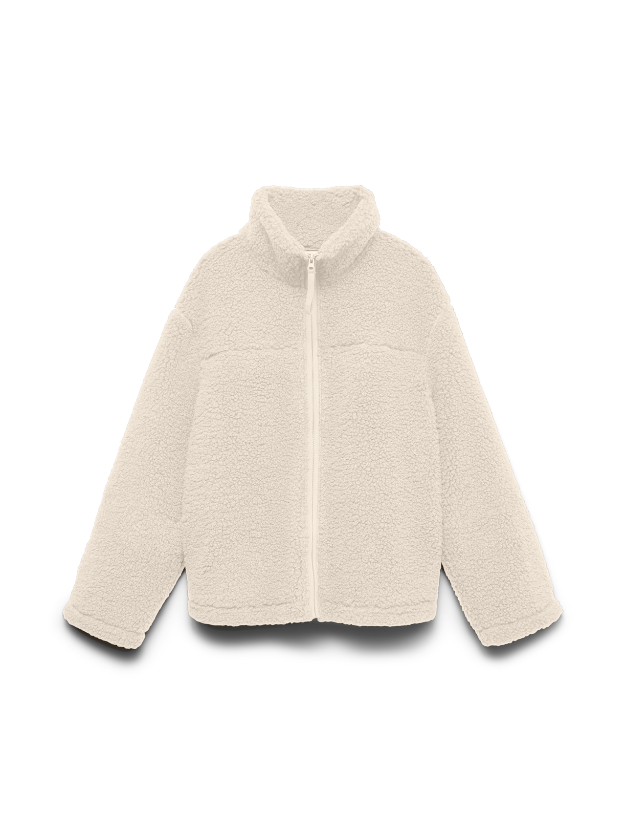 Gosig teddyjacka med dragkedja framtill, lite högre i halsen, raka ärmar, framfickor och fina sömmar som ger en fin detalj till jackan. Perfekt vår- och höstjacka. Normal i storleken men med en rymlig passform.