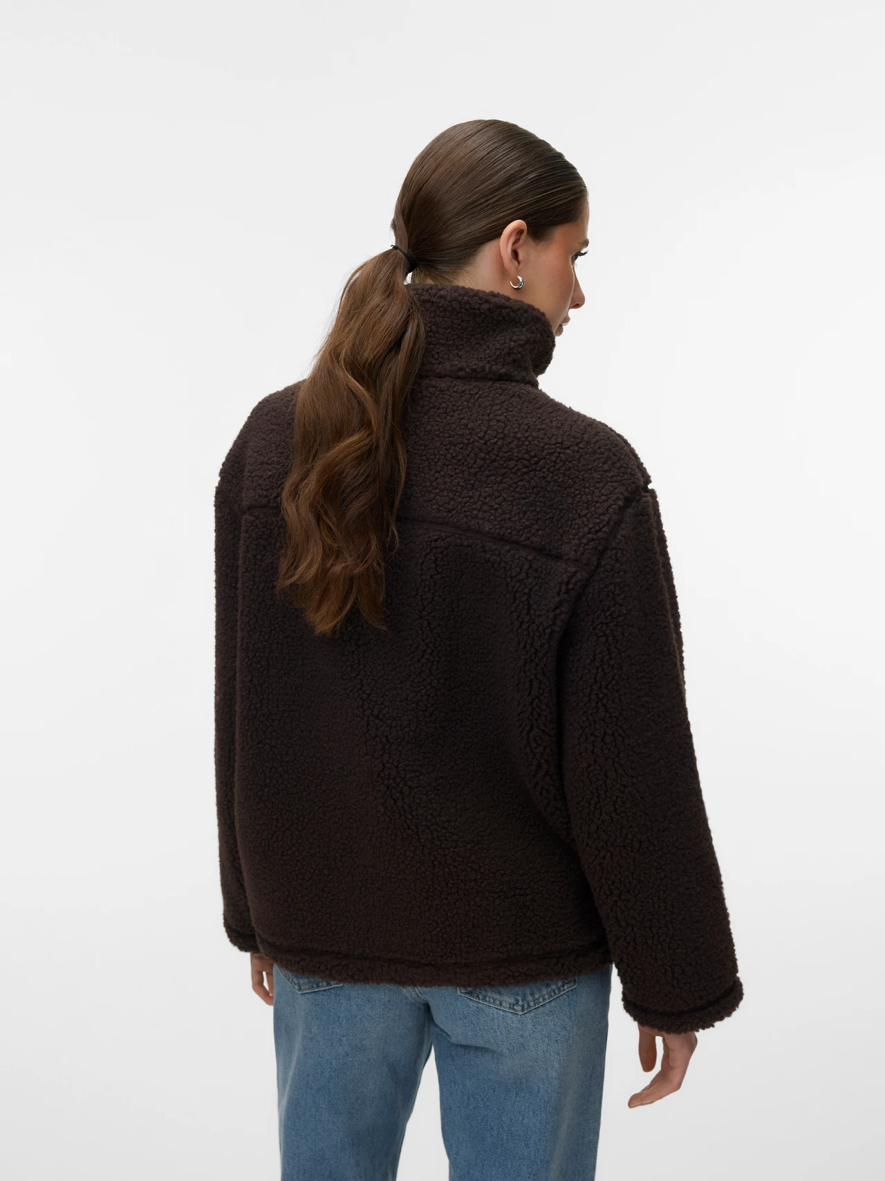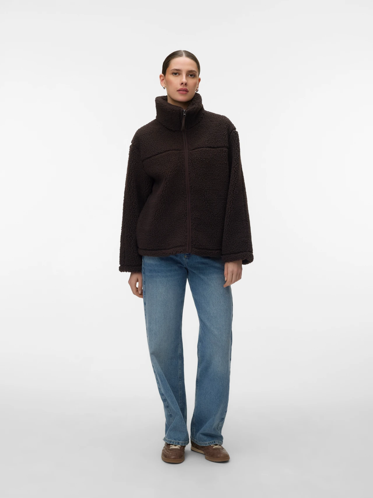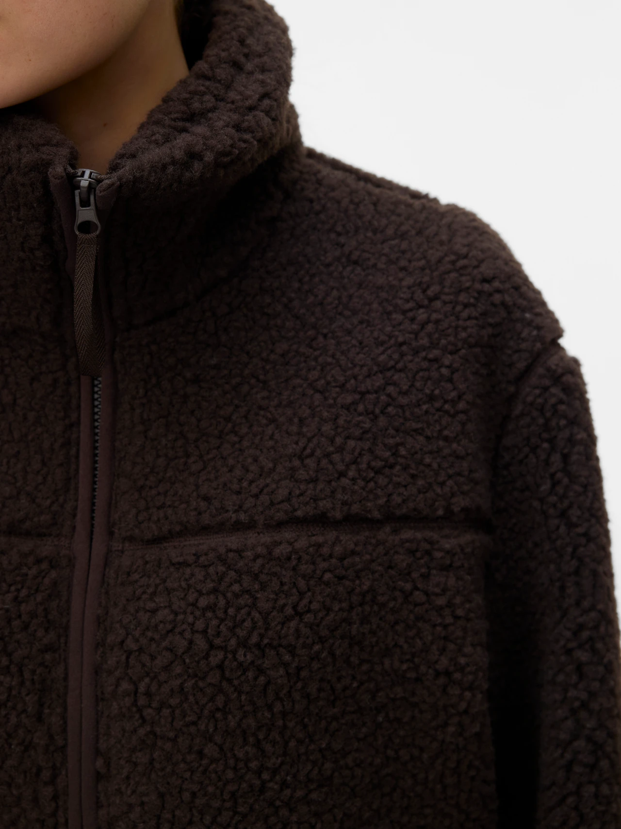 Gosig teddyjacka med dragkedja framtill, lite högre i halsen, raka ärmar, framfickor och fina sömmar som ger en fin detalj till jackan.