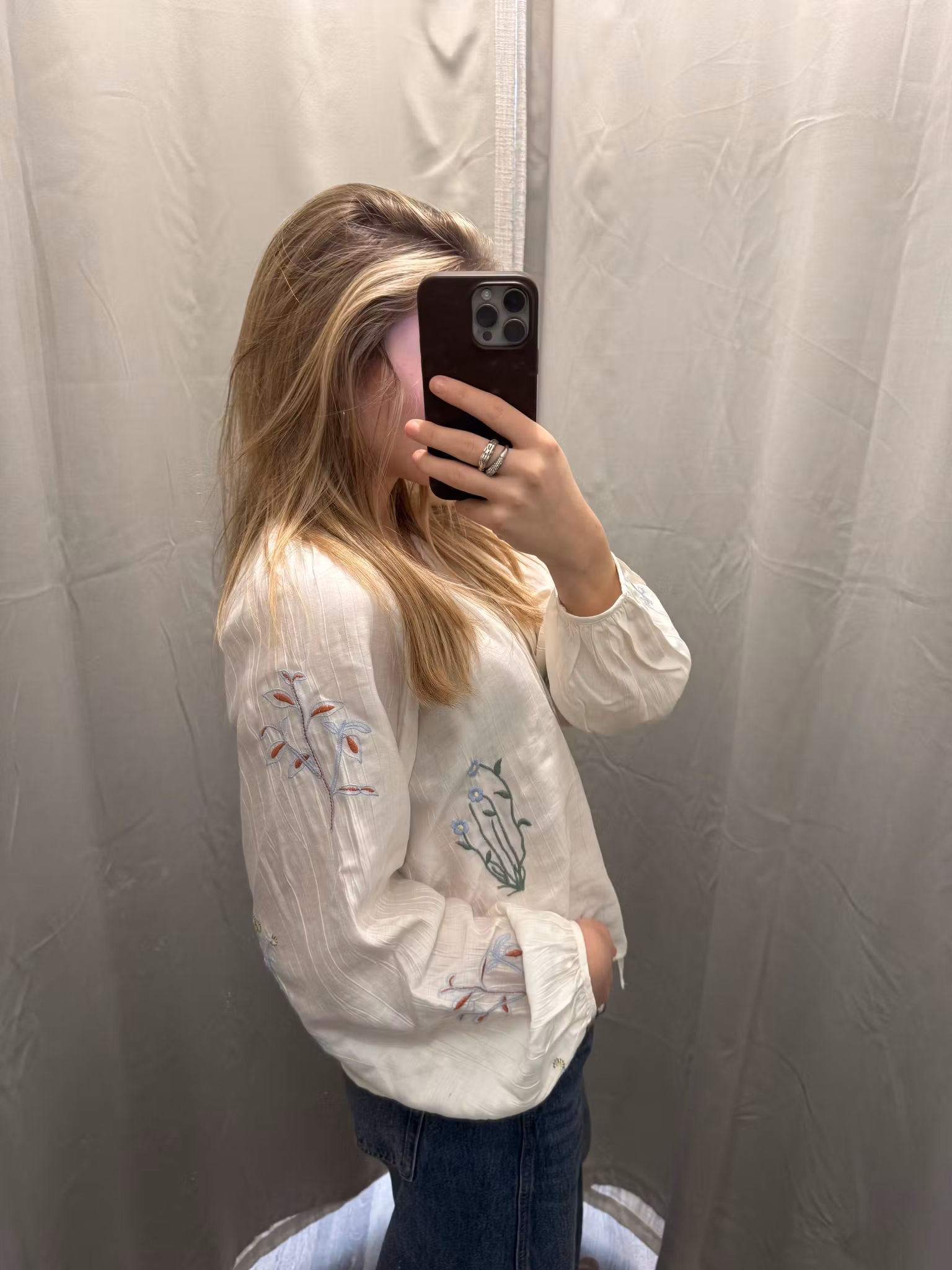 Fantastiskt fin och tunn blus med brodyr på sig i ljusgult, salviagrönt, rost och ljusblått! Ingen blus är den andra lik då broderierna sitter på olika ställen på alla blusar. Den är V-ringad, höftlång och puffiga ärmar. Normal i storleken, pendlar du i storlek kan du välja både din mindre och större då den är rymlig men tänk på att den är höftlång om du vill ha lite längd välj din större.
