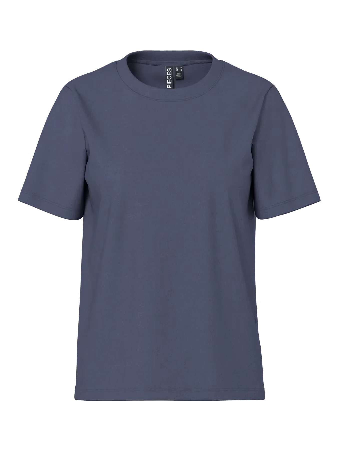 Rundhalsad stålgrå-blå t-shirt som är höftlång som är i en normal passform så den är inte tajt eller lös. Normal i storleken, pendlar du i storlek kan välja din större om du vill ha en lösare passform och din mindre om du inte vill ha den lös.