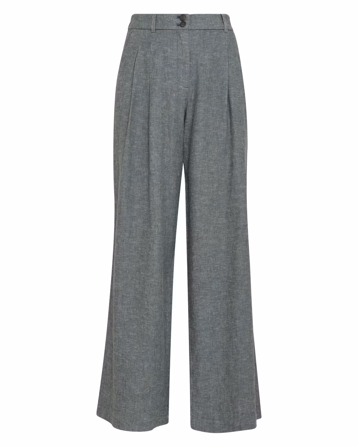 Raka linne- & viskos byxor i kostymbyx-format. Snygga veck framtill, hög midja, slät framtill och skön resår i ryggen, fickor fram och långa ben.