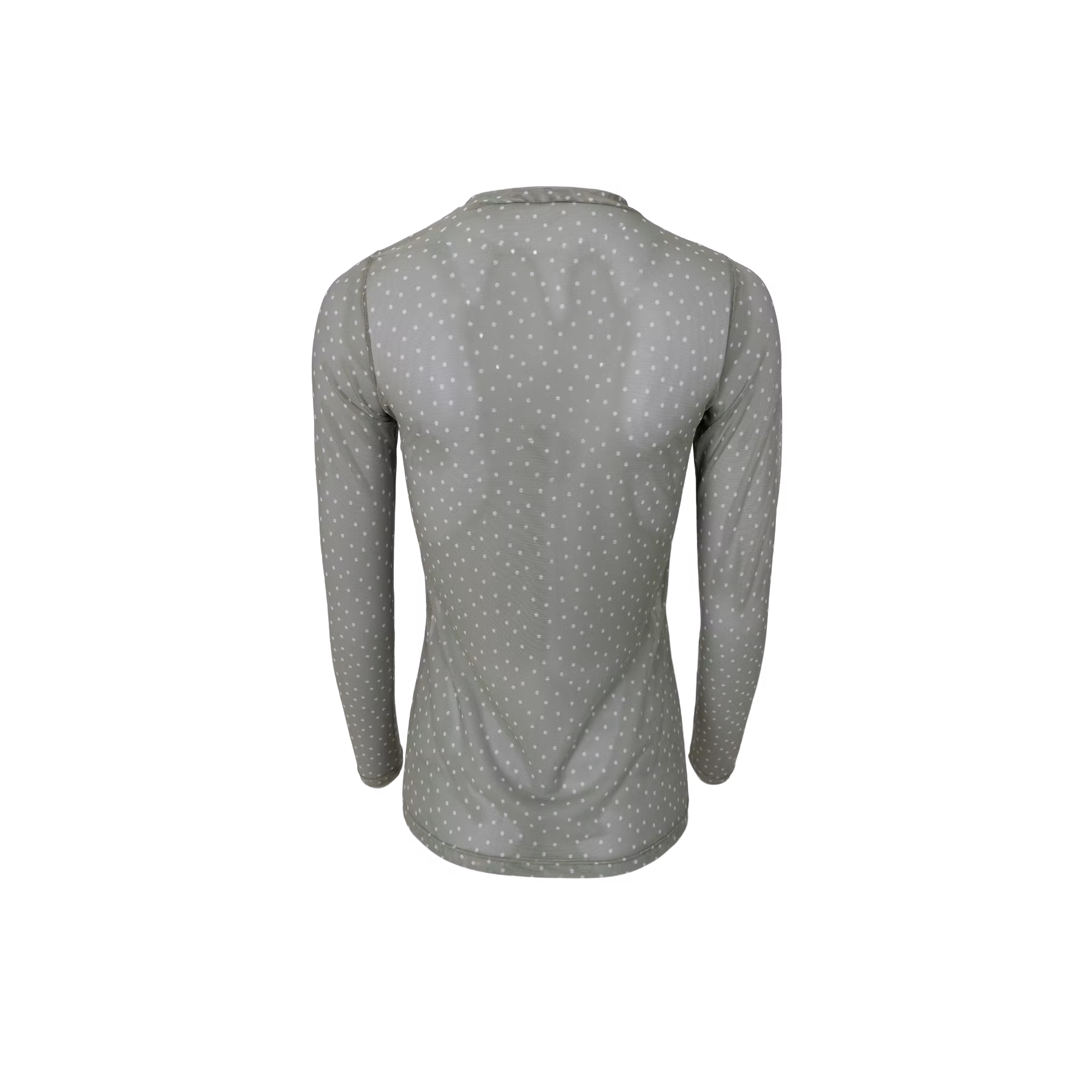 Meshtopp i grönt med ljusa prickar. Perfekt plagg att bära under stickat eller väst. Eller när man bara vill förlänga något ärmlöst eller kortärmat.