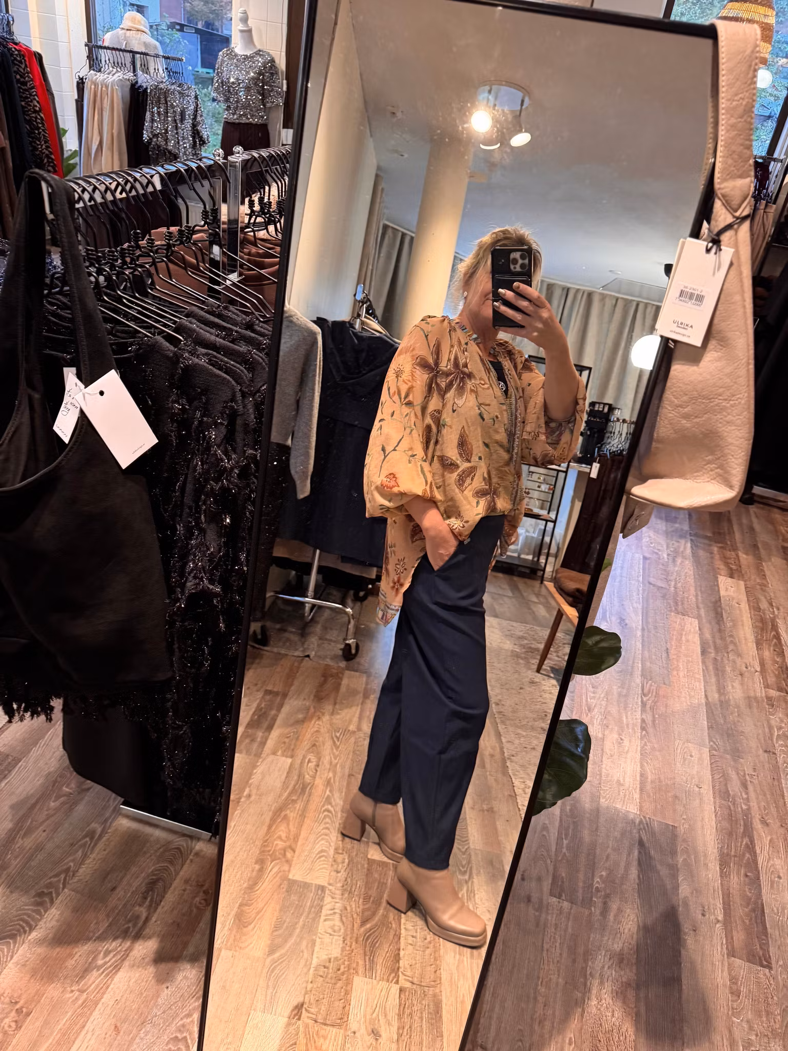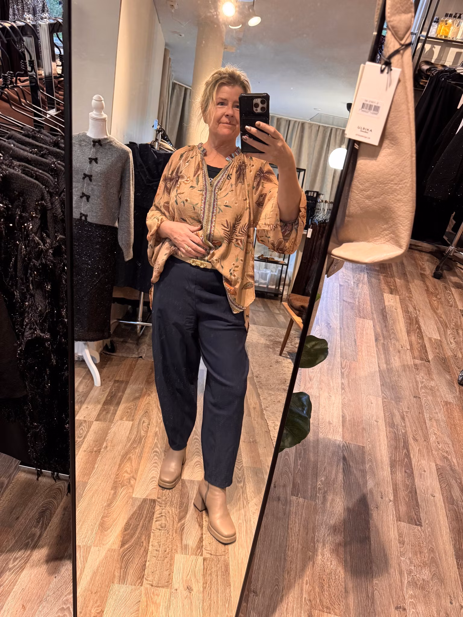 Stretchiga snygga barrelbyxor i 7/8-dels längd. Dea-på-byxa med hällor för bälte. Supersnygg att stoppa in i ett par grova kängor.