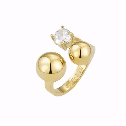 Brea Crystal Ring kombinerar kontraster på bästa sätt – två spegelblanka guldfärgade kulor möter en gnistrande kubisk zirkonia i en lyxig design.