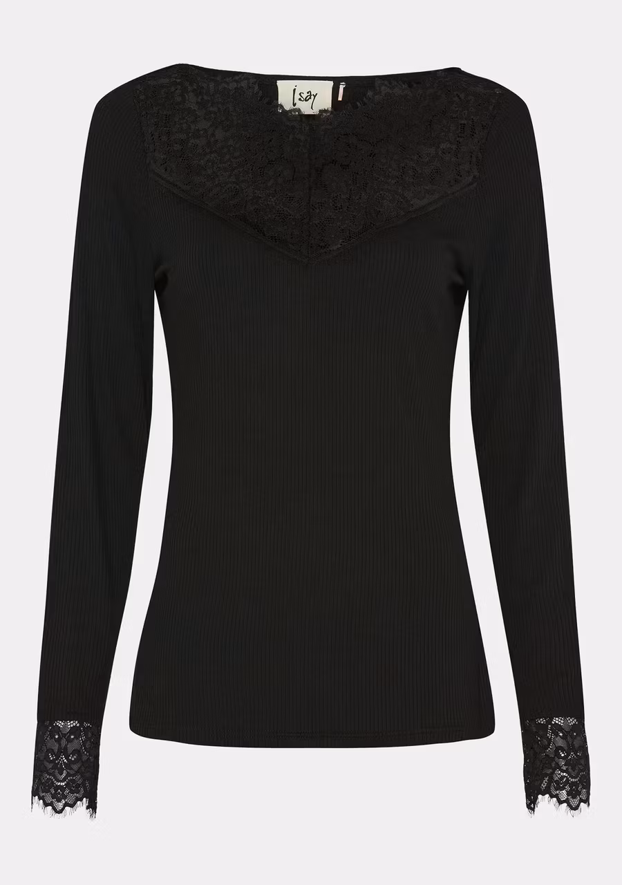 Långärmade topp tillverkad av en mjuk viskosblandning med stretch och har fina spetsdetaljer. Med sin figurnära passform är den perfekt för lager-på-lager.