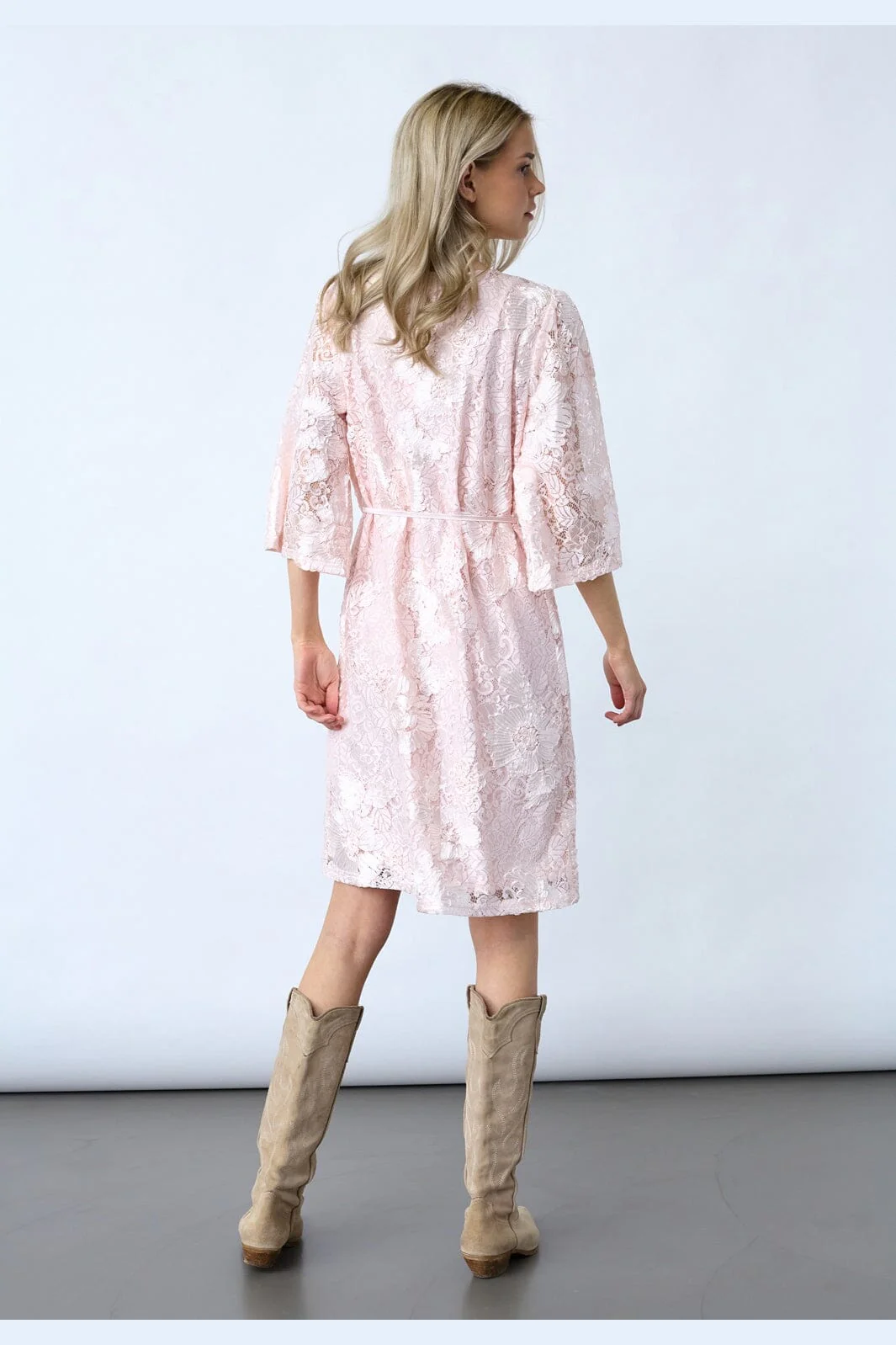 Knälång klänning med V-ringning, vida 3/4 ärmar, bälte i midjan och 3D-effekt i mönstret på hela klänningen. Super snygg till fest, en riktigt pang-look!
