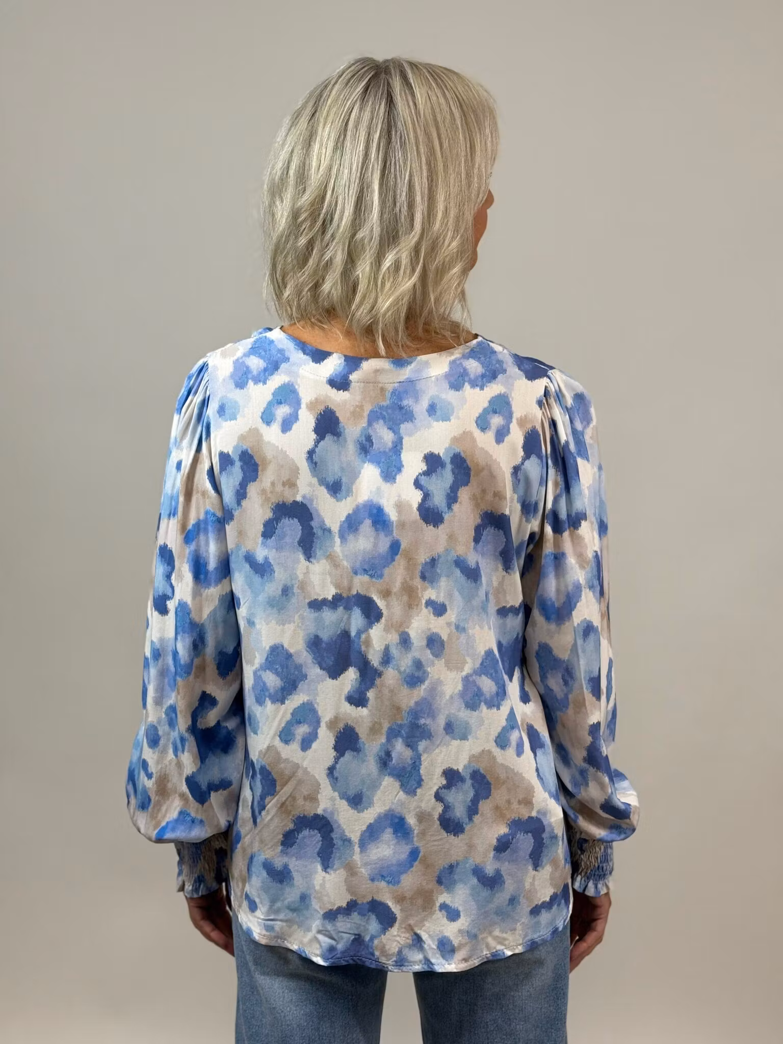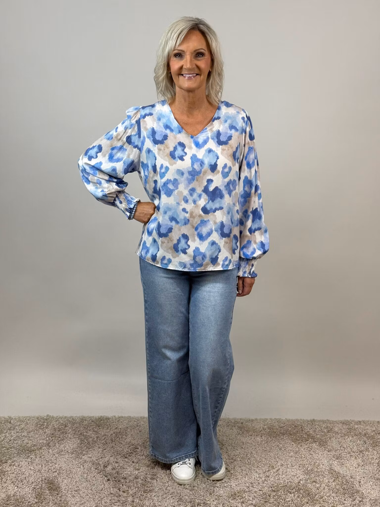 Snygg v-ringad viskosblus med smock i ärmslutMaterial: 100% viskos Märke: Mix by Heart