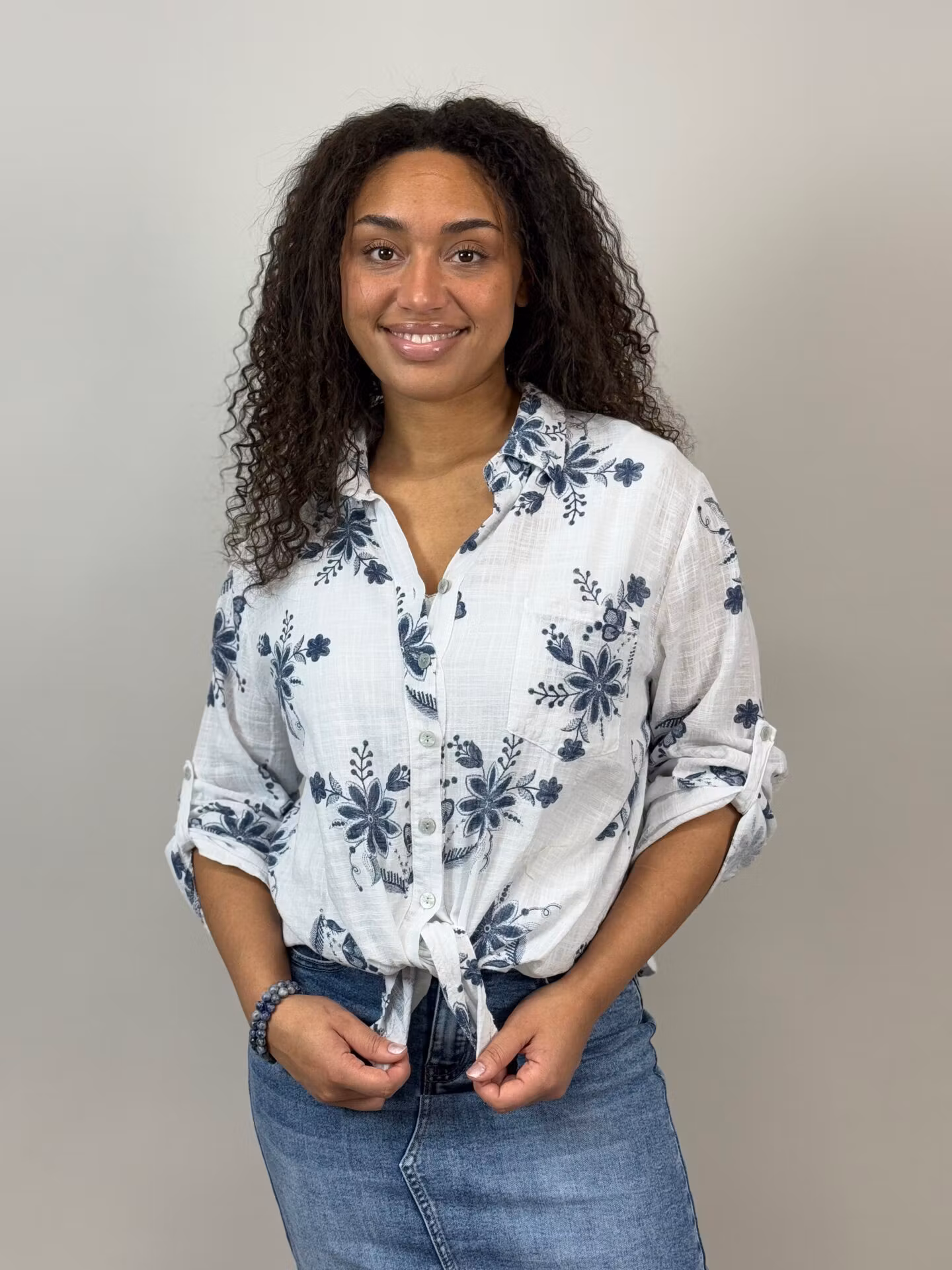 Skjortblus med krage knappar hela vägen, en bröstficka och slöjf. Skjortan är lika snygg att bära öppen med ett linne under som stängd.