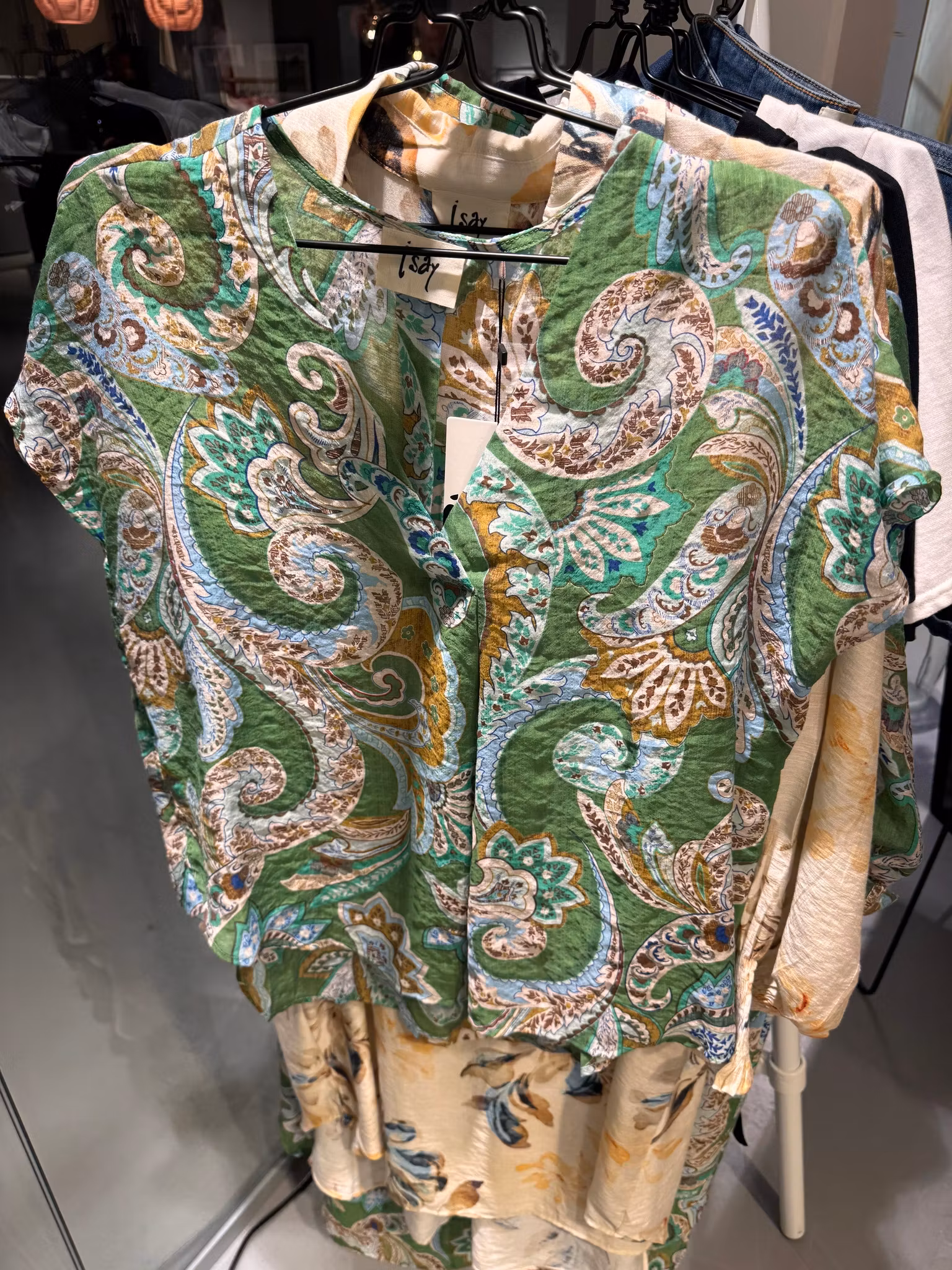 Det är en topp som fungerar för det mesta. Den kan vara det färgrika inslaget i en enkel outfit – eller blanda med andra nyanser om du vågar lite mer. Styla den med jeans jeansshorts för en avslappnad vardagslook – eller med linnebyxor och sandaler, när du vill ha en somrig känsla. Den fungerar också bra till festen under en kavaj, där mönstret får liv åt en mer nedtonad look.