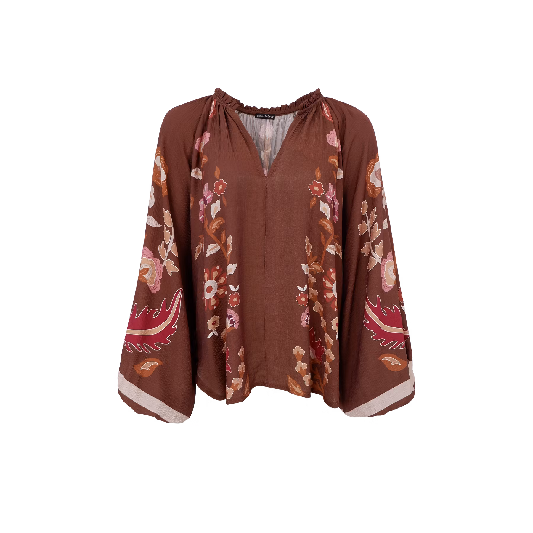 Oversize blus med vidd i ärmen, V-ringad och i magiska färger. Den är unik och höjer vilken nederdel som helst. Denna är i onesize och passar 34/36-42.