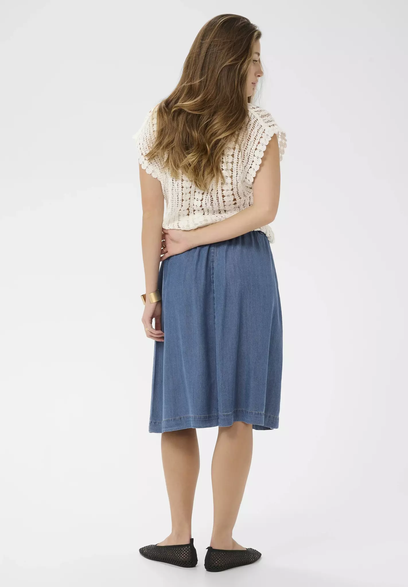 Mjuk härlig lyocellkjol med resår och knytband i midjan, A-firm på kjolen, har fickor i sidan knälång till midi lång beroende på din egna längd.