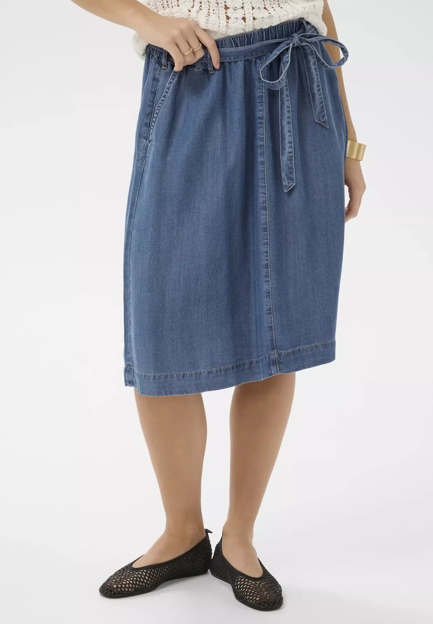Mjuk härlig lyocellkjol med resår och knytband i midjan, A-firm på kjolen, har fickor i sidan knälång till midi lång beroende på din egna längd. Material: 100%