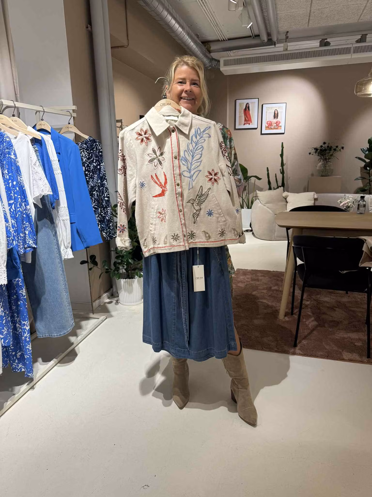 Mjuk härlig lyocellkjol med resår och knytband i midjan, A-firm på kjolen, har fickor i sidan, knälång till midi lång beroende på din egna längd. Normal till rymlig tack vare resåret i midjan.