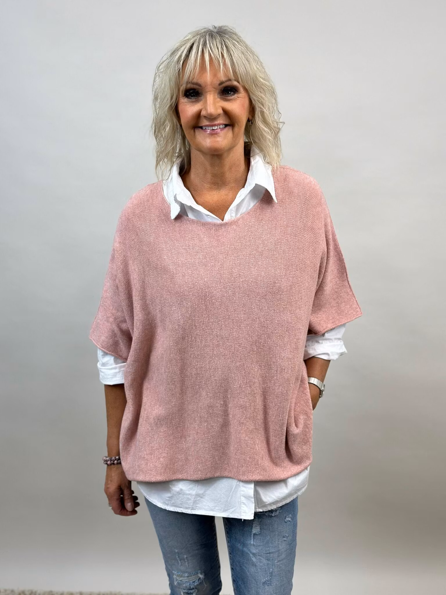 Den populära mjuka och sköna ponchotröjan som är i onesize som passar stl 34/36-46/48. Så snygg att bära över skjortor men lika snygg att bära som den är. Den är en boxig modell med vida 3/4 ärmar.