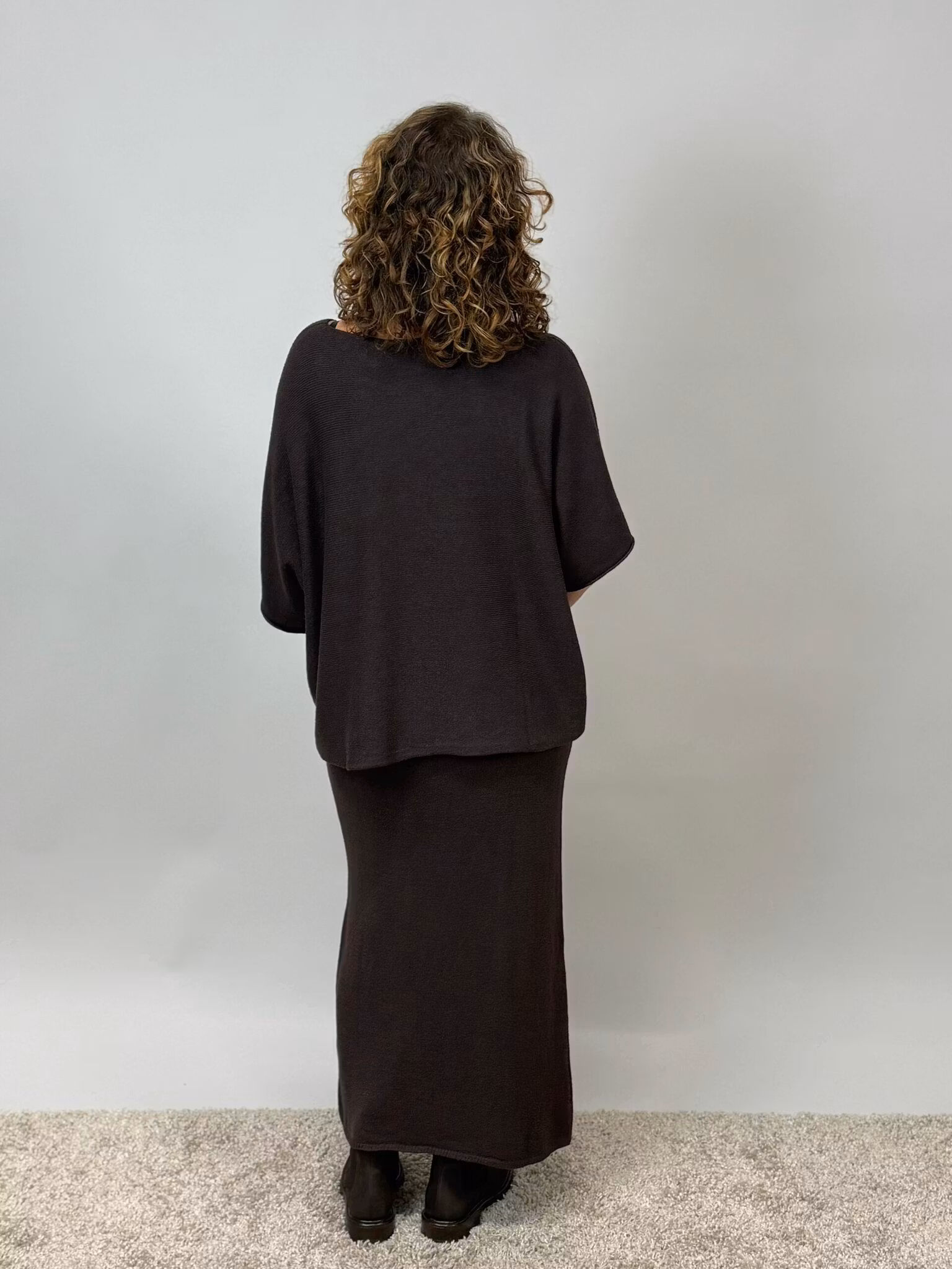 Den populära mjuka och sköna ponchotröjan som är i onesize som passar stl 34/36-46/48. Så snygg att bära över skjortor men lika snygg att bära som den är. Den är en boxig modell med vida 3/4 ärmar.