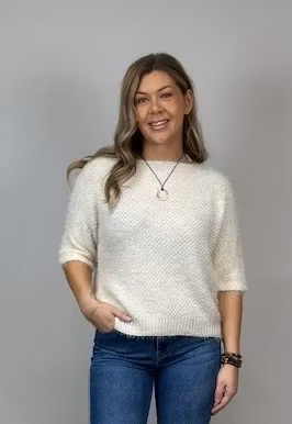 Gosig stickad kortärmad topp i onesize 34-42 Material: 50% akryl, 50% polyamidMärke: Mix by Heart