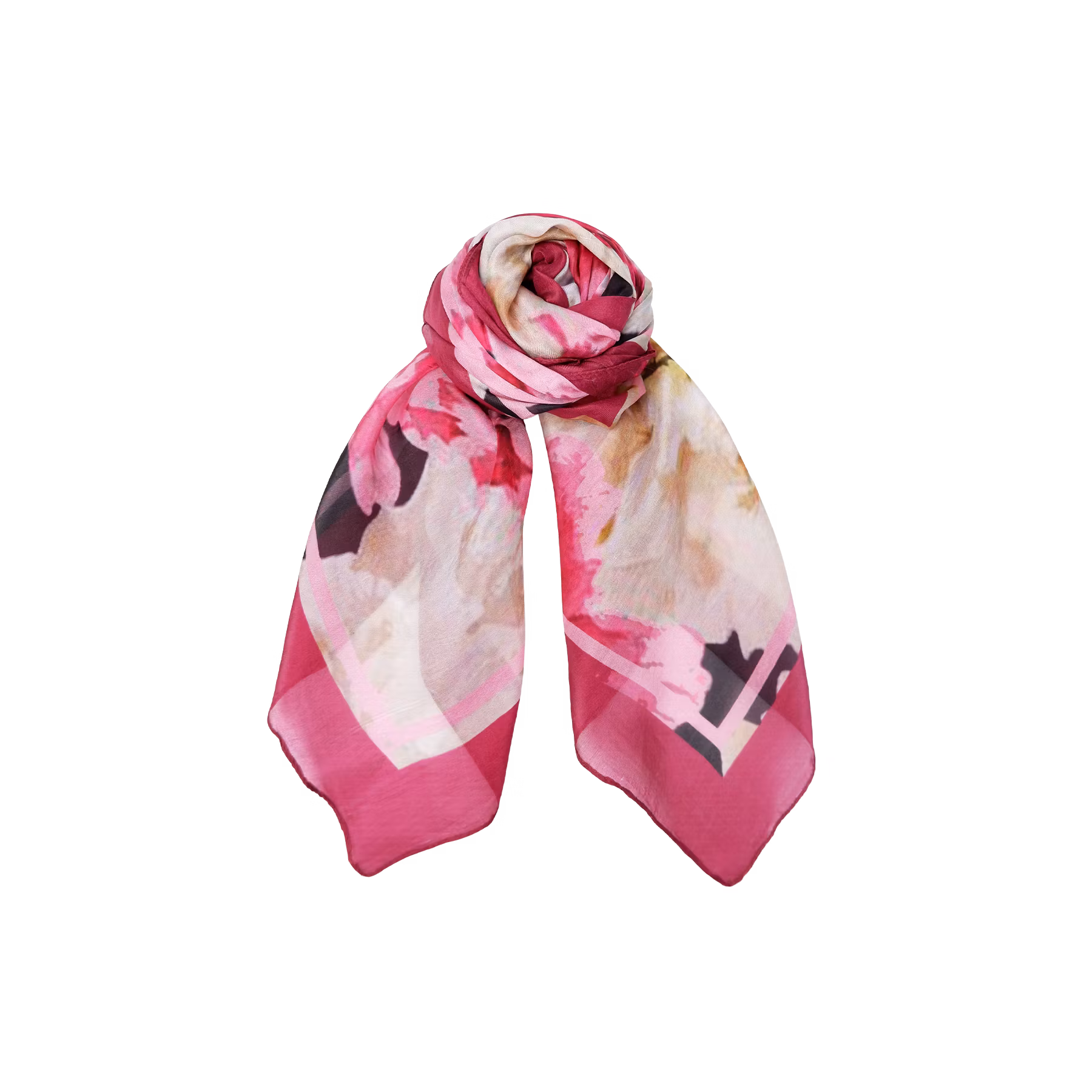Stor scarf i silke i ljuvliga färger! Lika snygg till brunt som till svart eller varför inte vinrött! Underbar i kvalitén. Mått: 100 cm x 100 cm