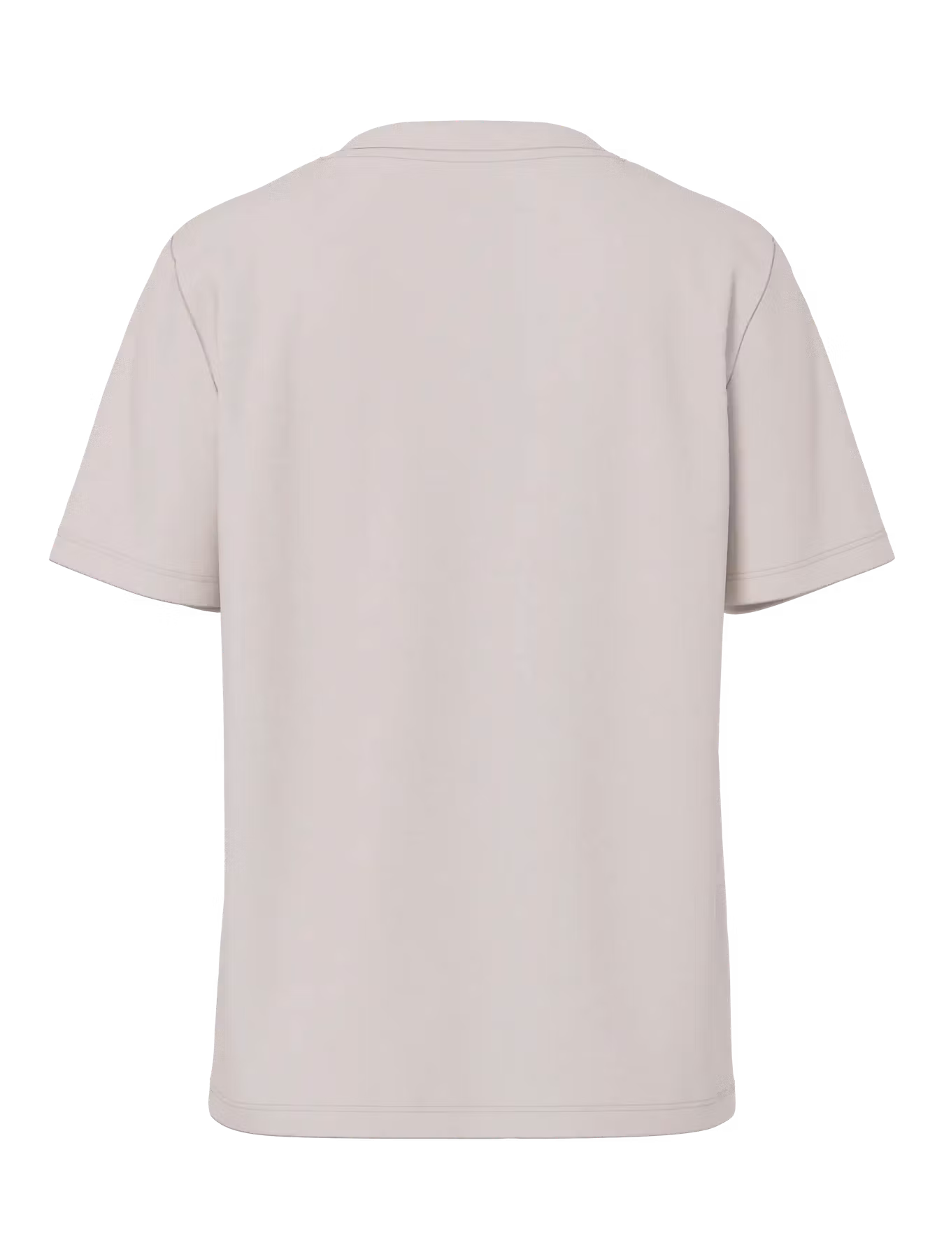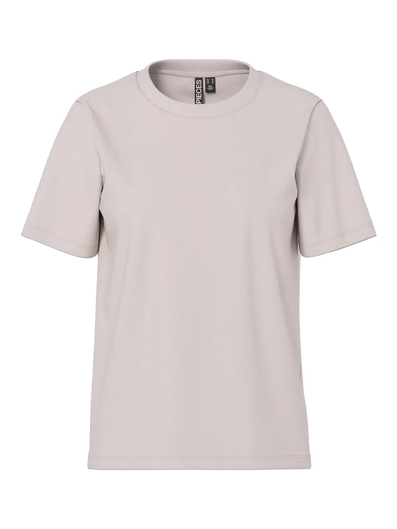 Rundhalsad kall sandfärgad t-shirt som är höftlång som är i en normal passform så den är inte tajt eller lös. Normal i storleken, pendlar du i storlek kan välja din större om du vill ha en lösare passform och din mindre om du inte vill ha den lös.